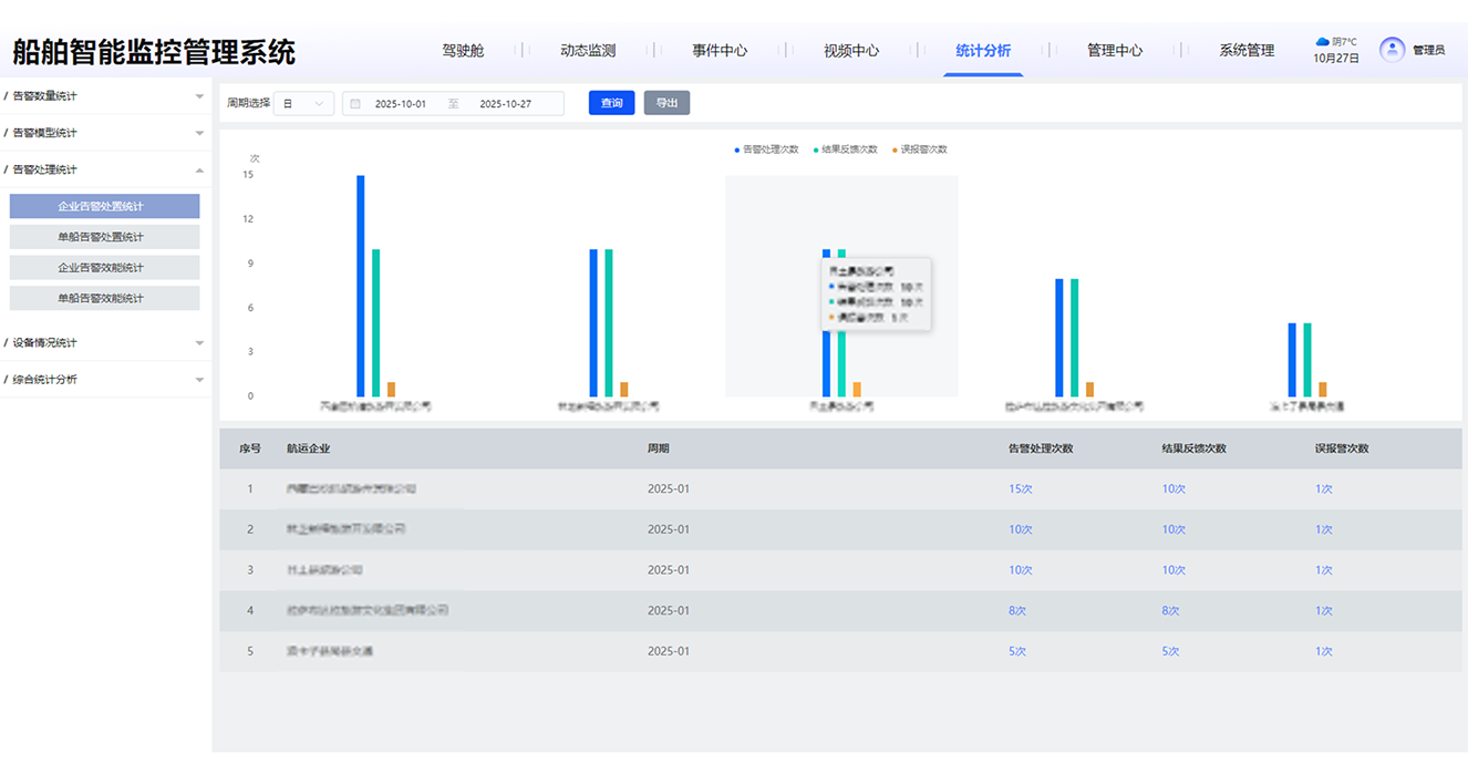 平台支持本地化与云平台部署,可无缝对接企业自有管理系统及全国性监管平台,提供船舶动态监控、船舶事件中心、视频中心、管理中心、统计分析以及APP应用等功能,实现从风险识别到事件处置的全流程闭环管理。